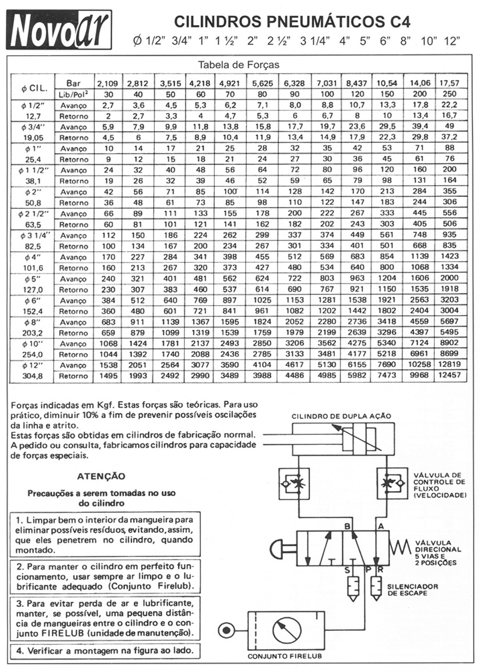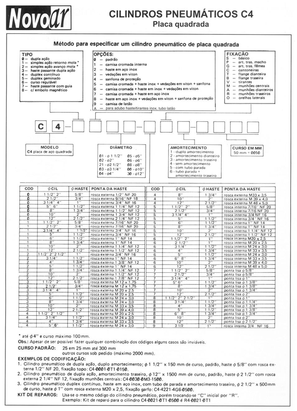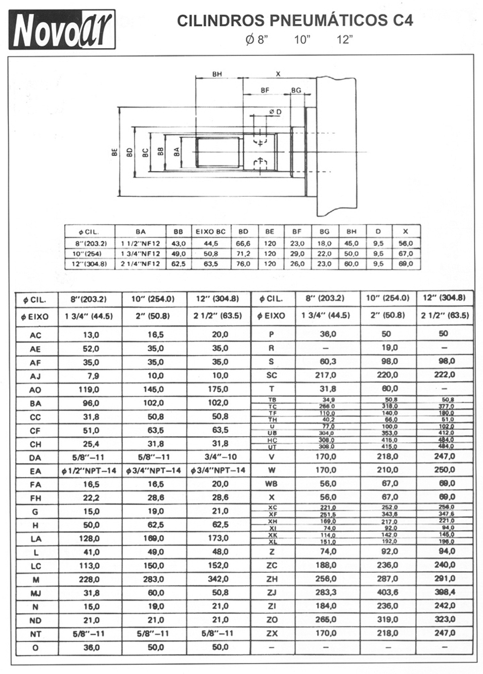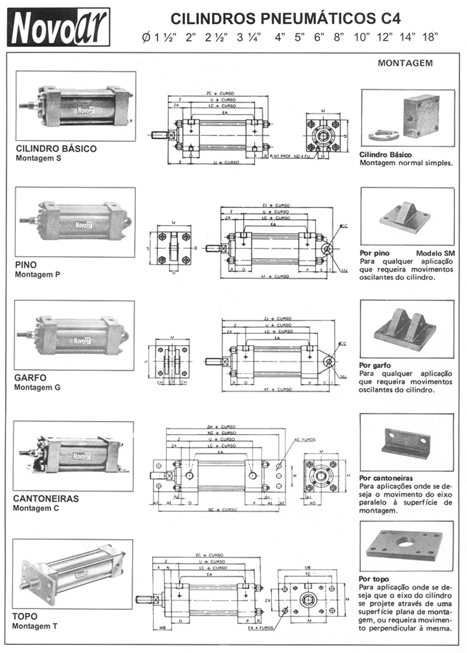 Os Cilindros Pneumáticos Novo Ar linha C4 são fabricados nos diâmetros de 1.1/2” a 30” , idealizado com a finalidade de proporcionar uma grande eficiência em qualquer aplicação a que for submetido suportam pressões de trabalho ate 18 bar , com duplo amortecimento regulável , vedações para baixa , alta temperatura e sem lubrificação . Poderá ser fabricado em tubo de latão até Ø 4”. O cilindros pneumático linha C4 são extremamente robustos de alta ciclagem proporcionando alta durabilidade.